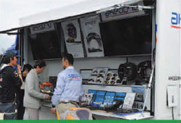 ブレーキシステムの解説 ディスクブレーキやドラムブレーキなどの仕組みを目で見て理解できるよう工夫した、曙ブレーキ工業の「技術講習巡回トラツク」が展示されます。